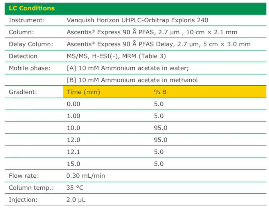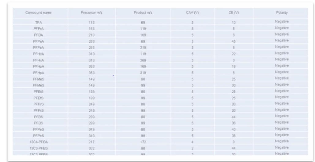 本研究建立并验证了适用于超短链与短链PFAS同步定量的高效分析方法,有效解决了C3-C8类小分子在常规色谱中保留弱、易受基质干扰、定性定量难度大的技术瓶颈,实现了水环境/食品基质中目标物的高灵敏度、高准确度检测。结果表明,超短链PFAS在实际样品中检出率高、赋存水平显著,其环境归趋与健康风险不容忽视。本方法可为新型PFAS化合物的日常监测、风险评估与标准制定提供可靠的技术支撑。未来应进一步拓展非靶向筛查、原位快速检测与多介质溯源研究,持续完善短链及超短链PFAS的全链条监测与管控体系,为环境安全与公共健康保障提供科学依据。