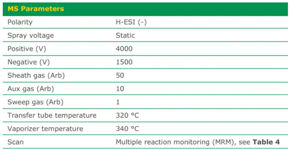 Table 4. MRM transitions