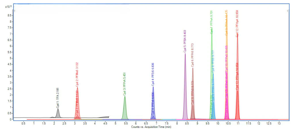 Figure 1. LC-MS/MS chromatogram of PFAS standard