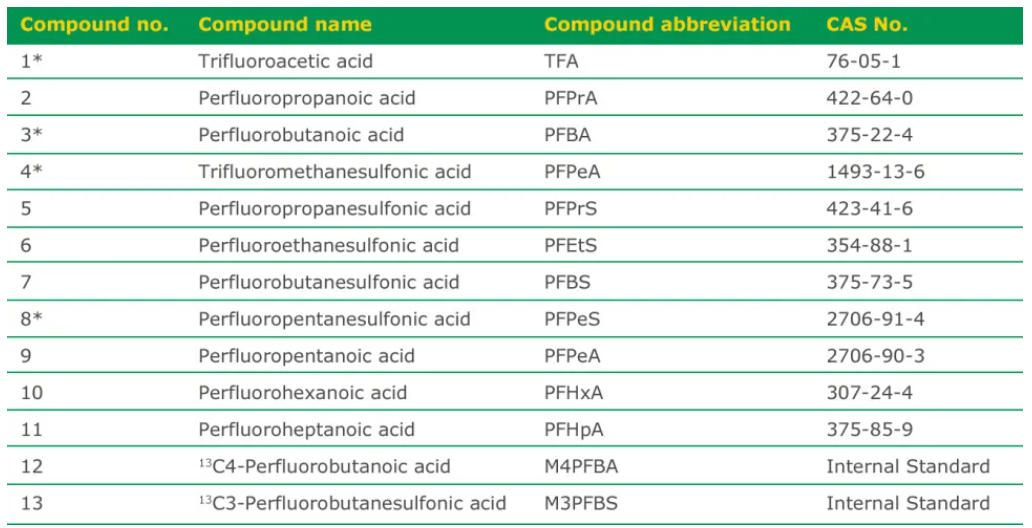 Table 1 PFAS analytes in scope of this study